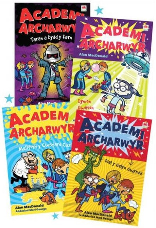 My opinion: I like the funny bits (most of the book to be honest!) and I love the superheroes. There are some hard words like 'archdroseddwyr' (supervillains)